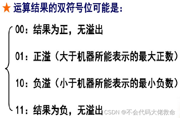 2.双符号位方法,又称为变形补码法。它是通过运算结果的两个符号位的状态来判断结果是否溢出。