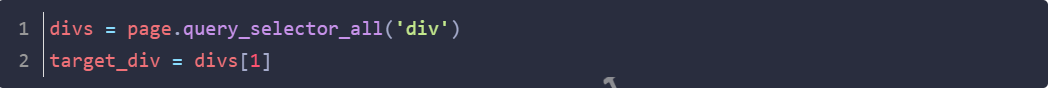 如果定位到多个元素,可以通过索引或者更精确的选择器来获取想要的元素。例如,如果query_selector_all返回了多个div元素,而你只想要第二个,可以使用索引: