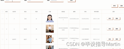 管理员对用户信息管理界面截图的如图4-14所示。可以通过会员号、姓名来进行查询操作。方便快速查询到用户的信息。