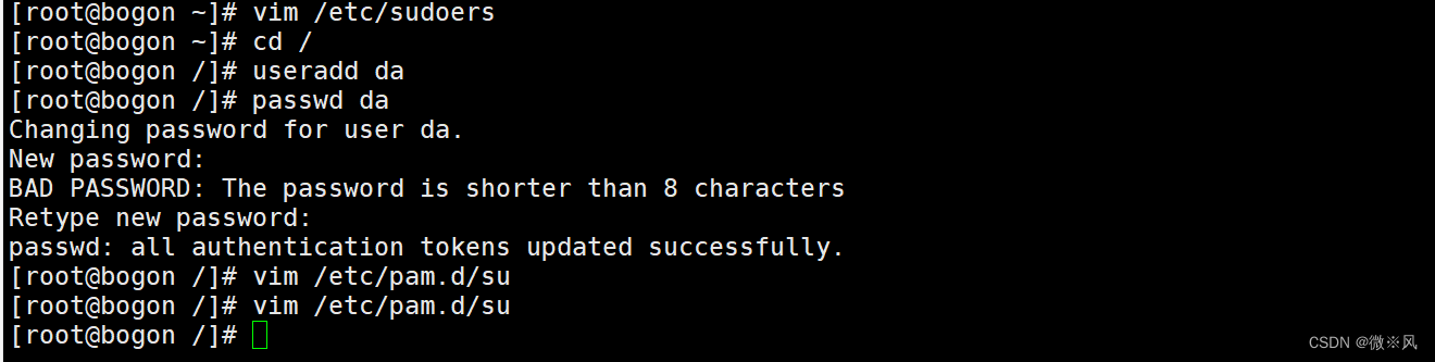 机制:当打开之后———su这个命令进行验证和限制——用户随意切换账号——除非加入wheel否则不能进行账号切换