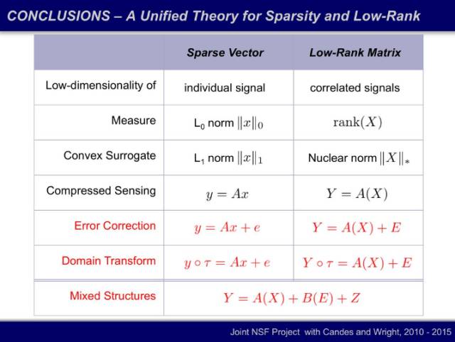 理论:稀疏和低秩的信息恢复