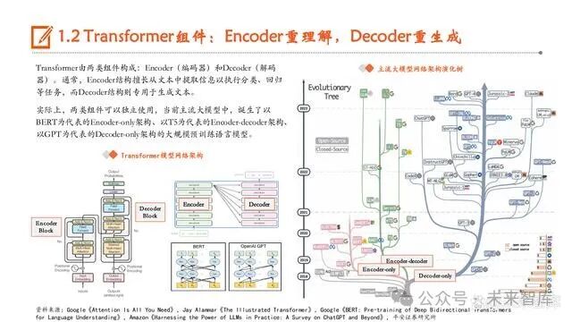 当前主流大模型普遍是基于Transformer模型进行设计的。Transformer模型在Google团队2017年论文《Attention Is All You Need》中被首次提 出,Transformer的核心优势在于具有独特的自注意力(Self-attention)机制,能够直接建模任意距离的词元之间的交互关系,解决了循环 神经网络(RNN)、卷积神经网络(CNN)等传统神经网络存在的长序列依赖问题。 相较于RNN,Transformer具有两个显著的优势。1)处理长序列数据:RNN受限于循环结构,难以处理长序列数据。Self-attention机制能够 同时处理序列中的所有位置,捕捉全局依赖关系,从而更准确地理解、表示文本含义。2)实现并行化计算:RNN作为时序结构,需要依 次处理序列中的每个元素,计算速度受到较大限制,而Transformer则可以一次性处理整个序列,大大提高了计算效率。
