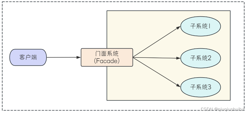 主要做的事情就是让客户端减少和底层的直接交互,而是通过这个抽象层,访问子系统的一堆接口,降低了其中的耦合性,定义了一个高层接口,让子系统更容易被使用