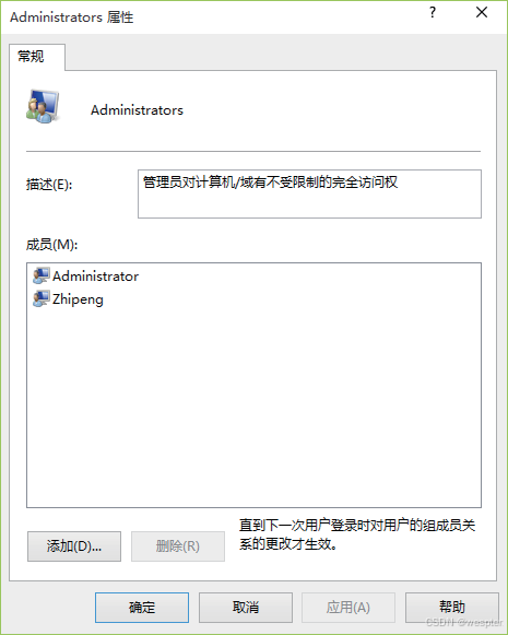 - Administrators 组:Administrators 组成员包含所有系统管理员账户,如下图所示。通常使用 Administrators 组对所有系统管理员账户的权限进行分配。