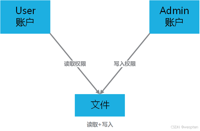 - 权限的积累:用户对文件的有效权限等于分配给该用户账户和用户所属的组的所有权限的总和。如果用户账户对文件具有读取权限,该用户所属的组又对该文件具有写入的权限,则该用户账户就对此文件同时具有读取和写入的权限,如下图所示。