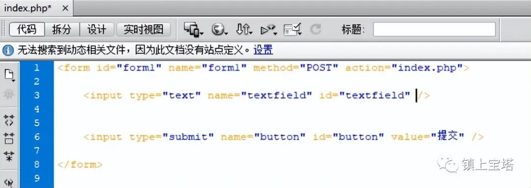 以上HTML的基础知识稍微有接触的朋友们都懂。接下来举例PHP通GET方法页面数据的传递。首先建立也index.PHP文档,在FORM标记包含一个文本框和一个提交按钮。如下图。