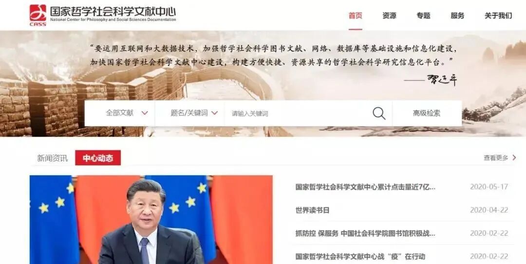 新上线的国家哲学社会科学文献中心主要开设有资讯、资源、专题、服务四个栏目,资源包括中文、外文学术期刊7000多种,还有外文图书、古籍等四类,上线文献数据超过1000万条,与国内60多家社会科学研究机构网站导航链接,初步形成国家哲学社会科学学术期刊数据库,外文学术期刊数据库,中国社会科学院科研成果数据库等特色资源数据库。