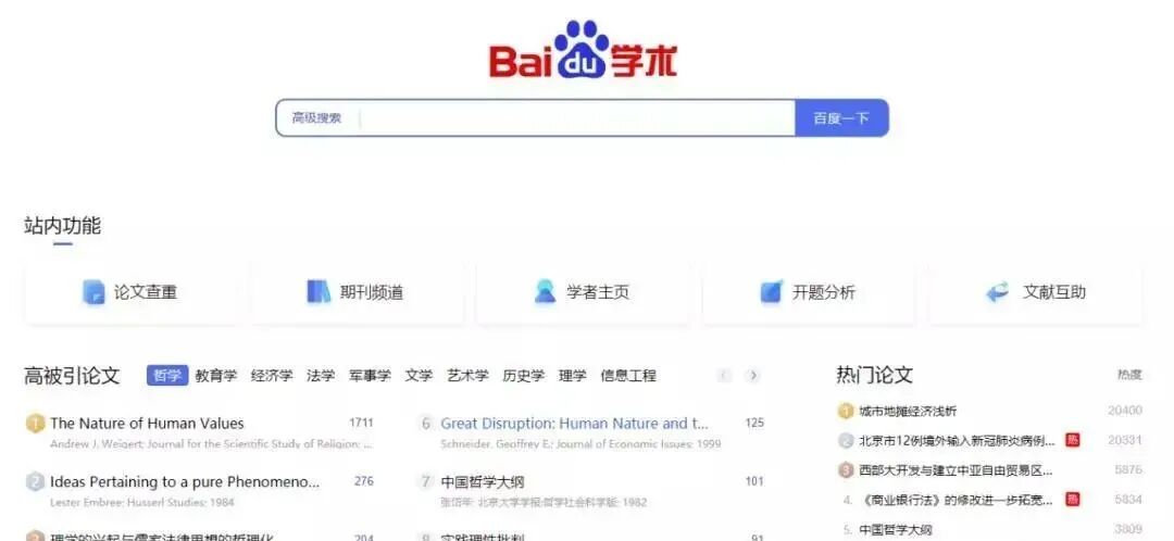 百度学术搜索,是一个提供海量中英文文献检索的学术资源搜索平台,涵盖了各类学术期刊、学位、会议论文,旨在为国内外学者提供最好的科研体验。