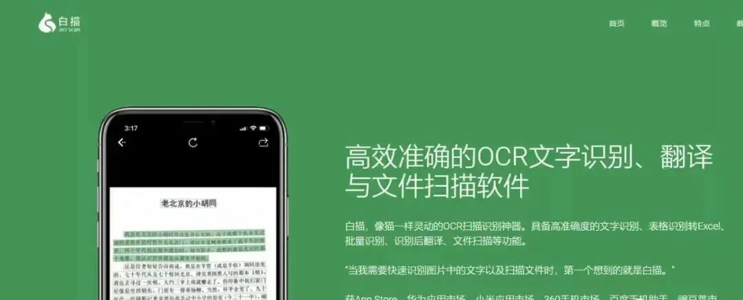 白描,像猫一样灵动的OCR扫描识别神器。具备高准确度的文字识别、表格识别转Excel、批量识别、识别后翻译、文件扫描等功能。