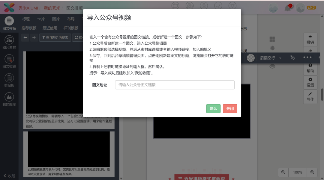 点击视频模板,点击“导入视频”,复制对应公众号链接。