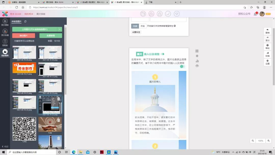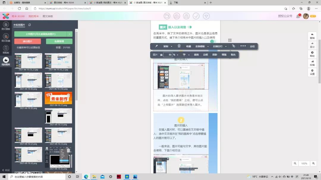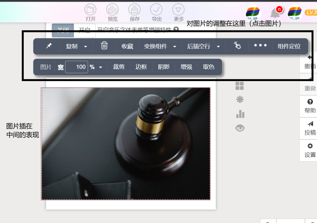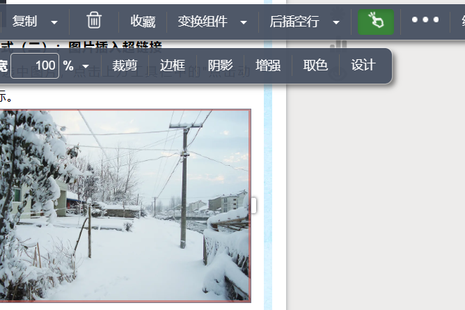 对于图片的调整,只需单击需要调整的图片,就可以对图片的大小,比例进行调节。