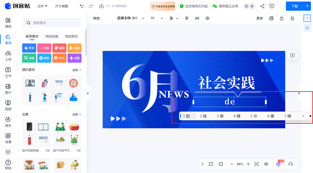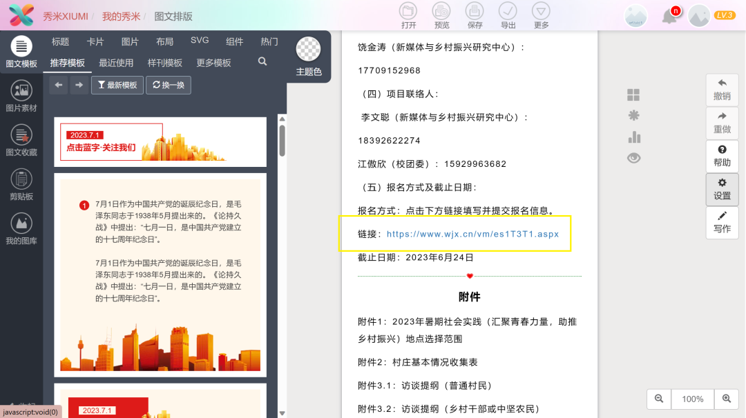 5.进入模板界面,任何元素均可进行编辑和移动,DIY一个能吸引人眼球、体现自己团队特色的公众号首图吧!