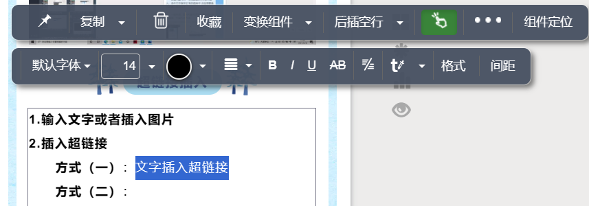 选中文字或图片,点击上方工具栏中的”点击动作”图标;