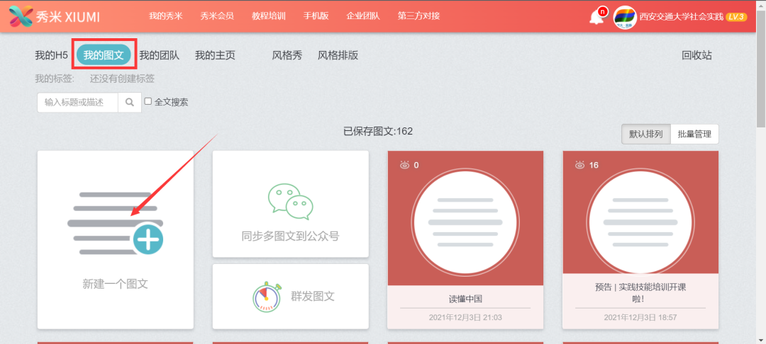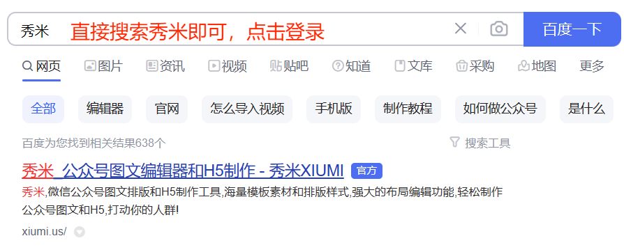 1.直接搜索秀米后点击,进入页面后注册登录。