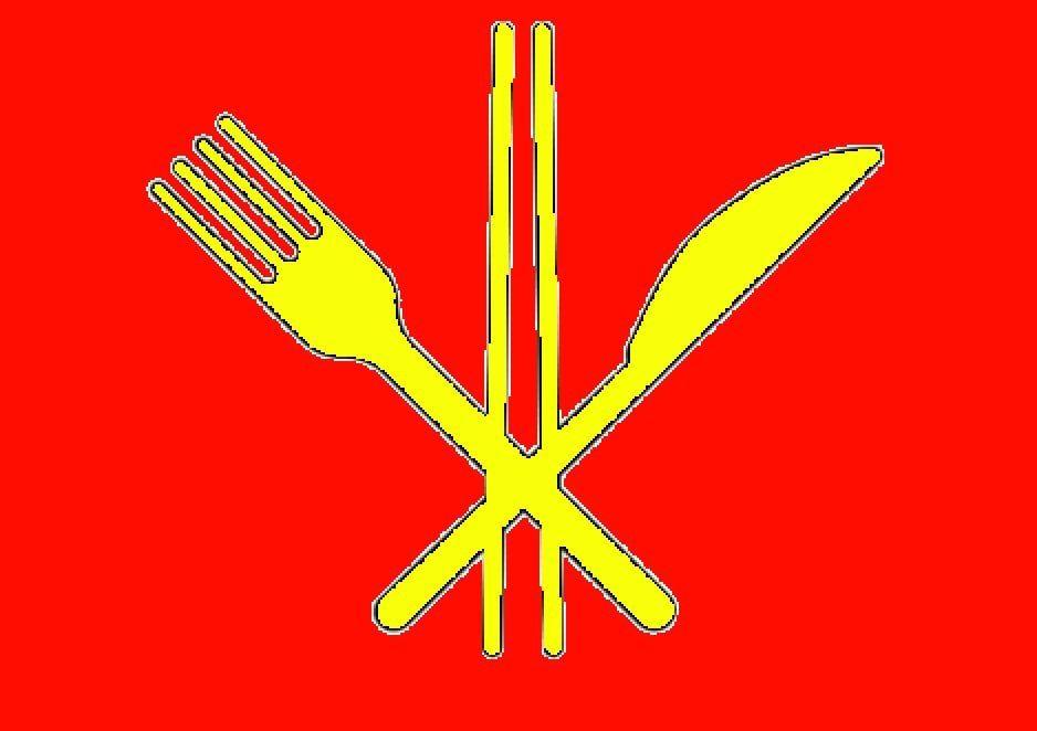 刀叉、碗筷都是不好识别的,还不如用半个西瓜表示,红色瓜瓤很醒目,又没歧义。