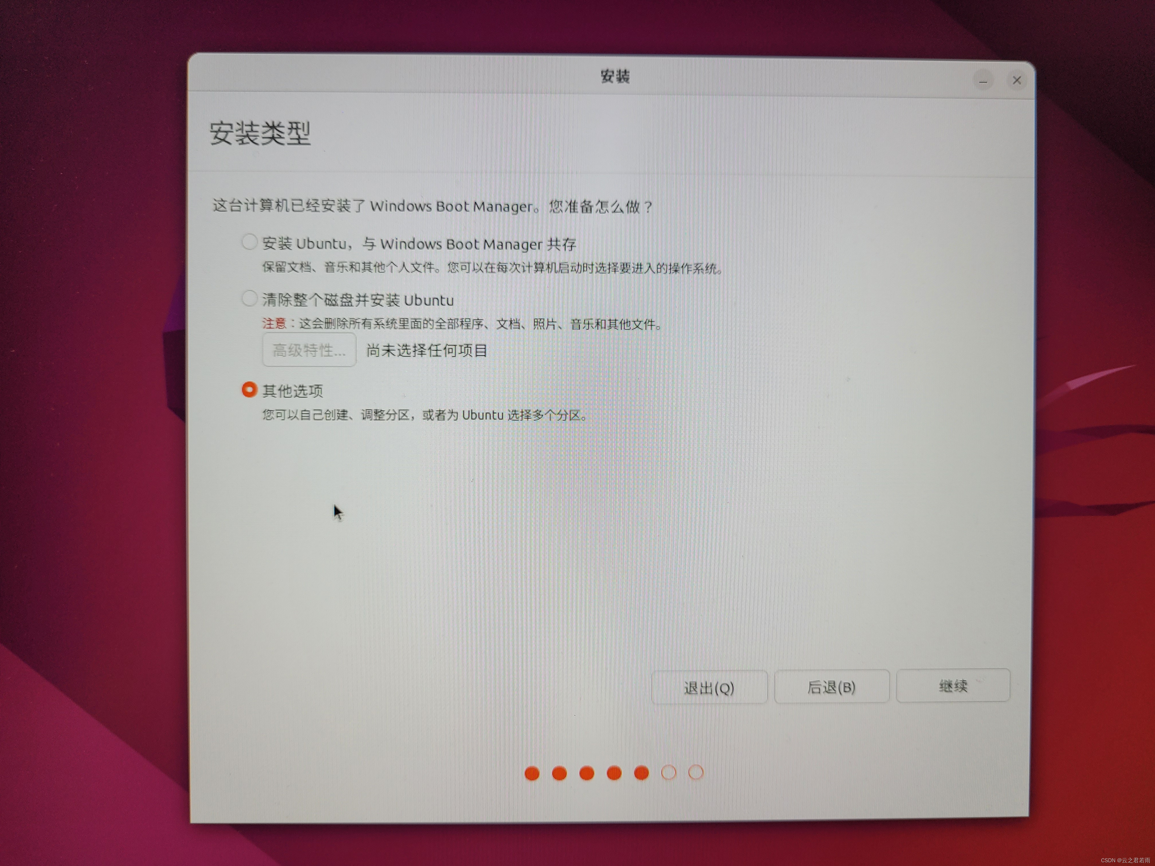 请选择其他选项,否则无法使用Win + Ubuntu 双系统;