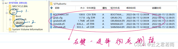 打开EFI - ubuntu - 选中所有文件 - 彻底删除