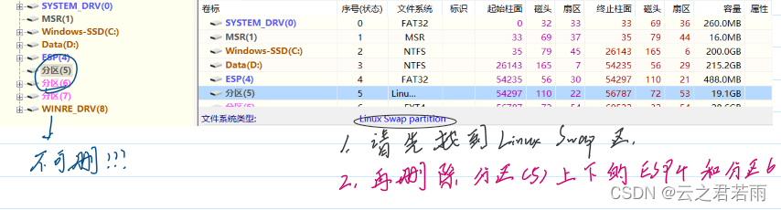 我们应该删除Linux的引导区(Boot),虚拟内存区(Swap),和根目录(/);