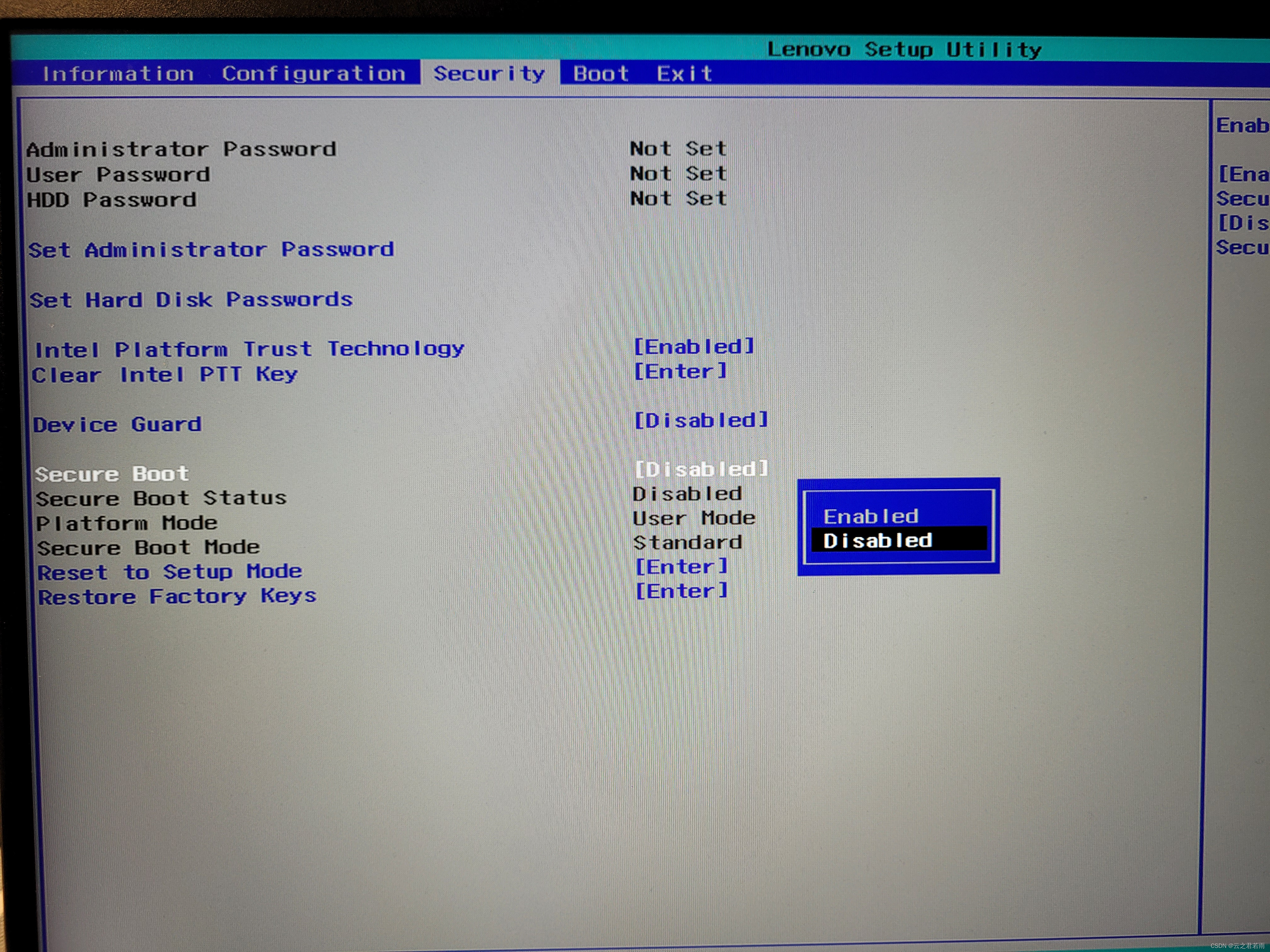 选择Secure Boot,尔后选择Disabled