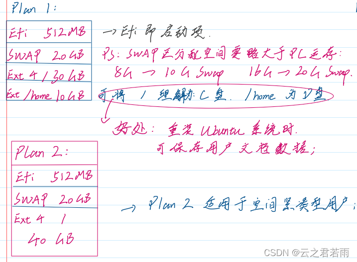 推荐Plan 1,保证了重装系统时用户数据的稳定性;