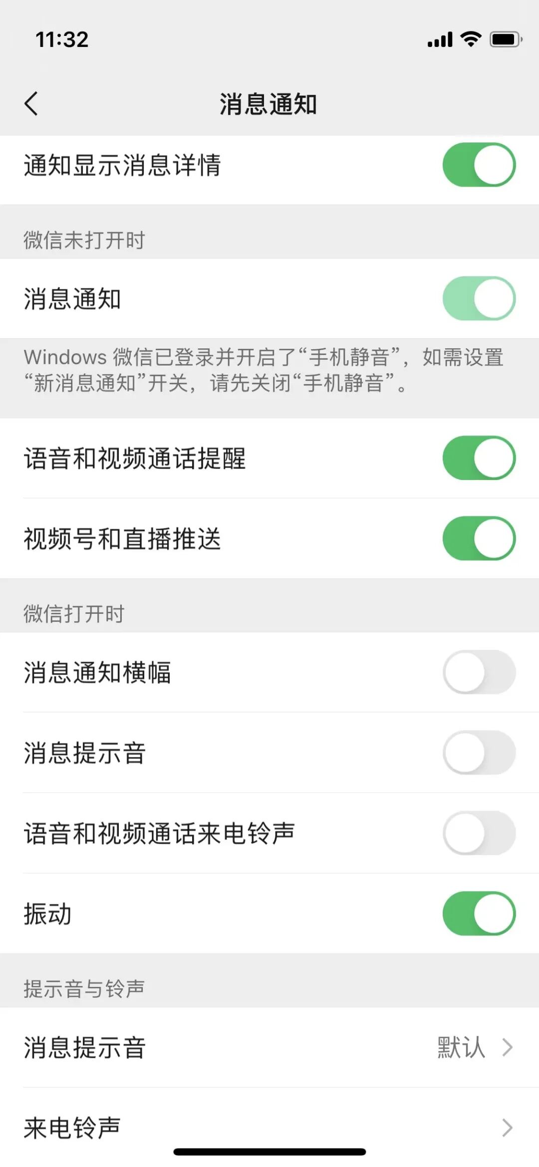- 微信设置问题:微信的设置里,可能不小心被调成了静音。