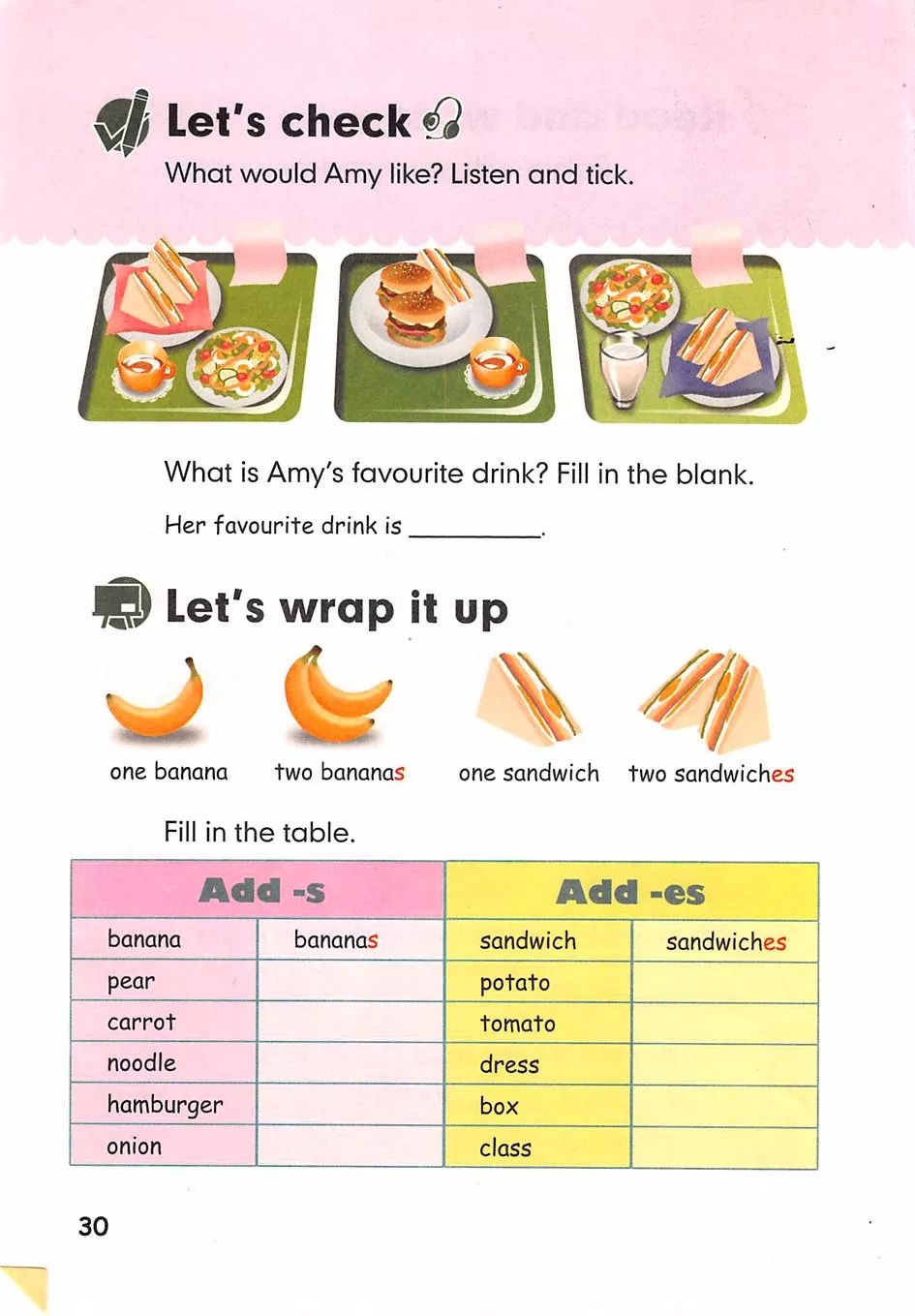 1. bananas 2. sandwiches 3. onions 4. dresses 5. buses