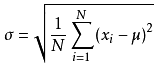 公式描述:公式中数值为X1,X2,X3,……XN(皆为实数),其平均值(算数平均值)μ,标准差为σ
