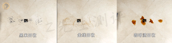 地面投放黑米、金线、咖啡渍等干湿垃圾,机器一遍过就全部回收,清洁效果好、效率高。