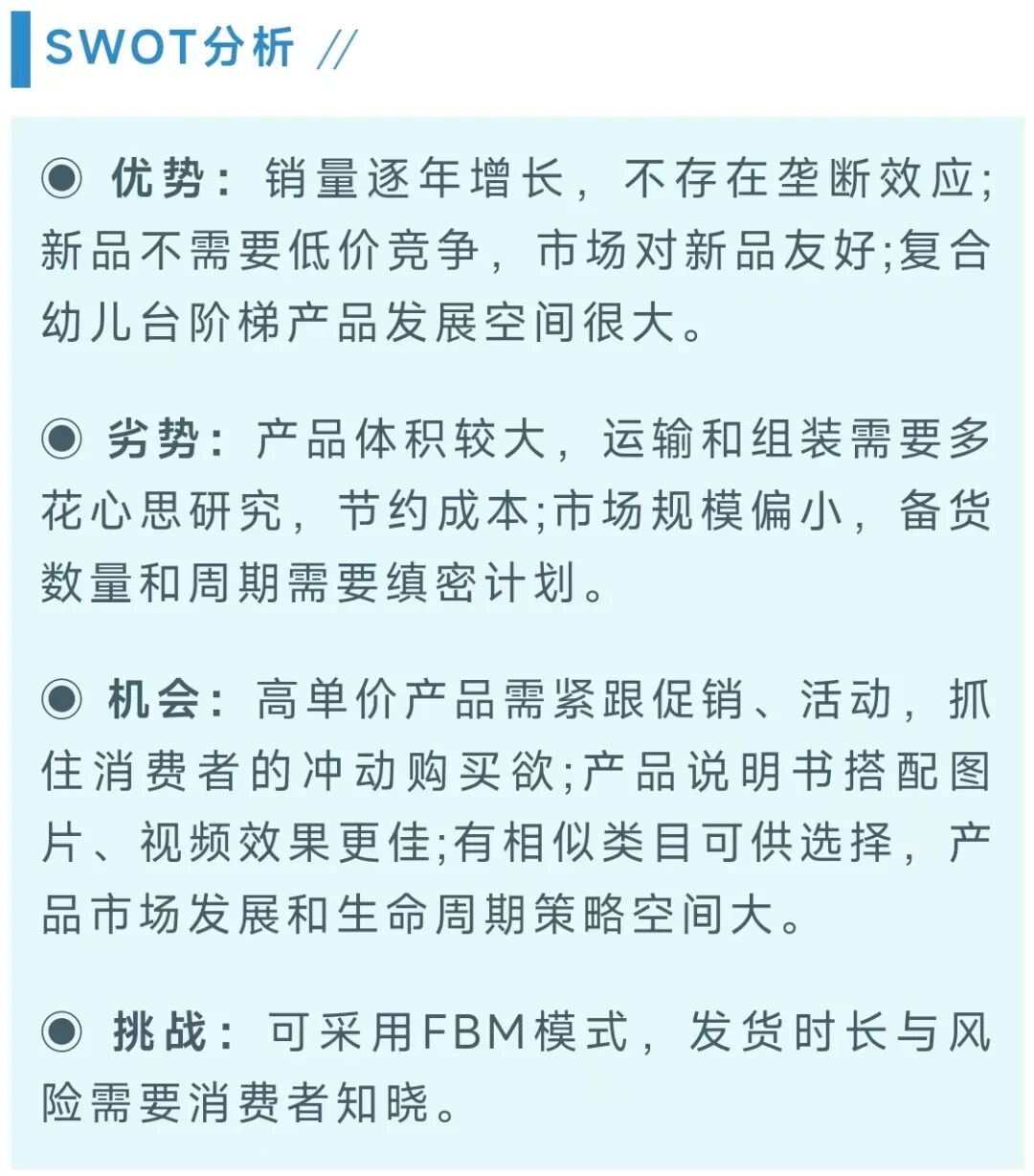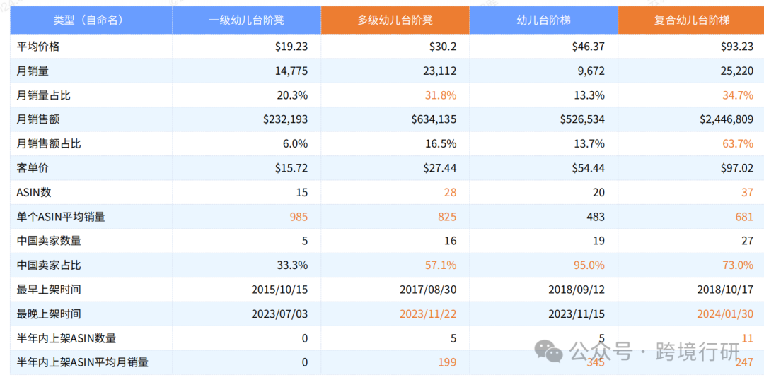 其中,多级幼儿台阶凳和复合幼儿台阶梯,被更多消费者青睐,复合幼儿台阶梯以高均价、高销量、高份额,体现了消费者愿意高消费的市场趋势,卖家可结合自身实际决定是否适合进入。