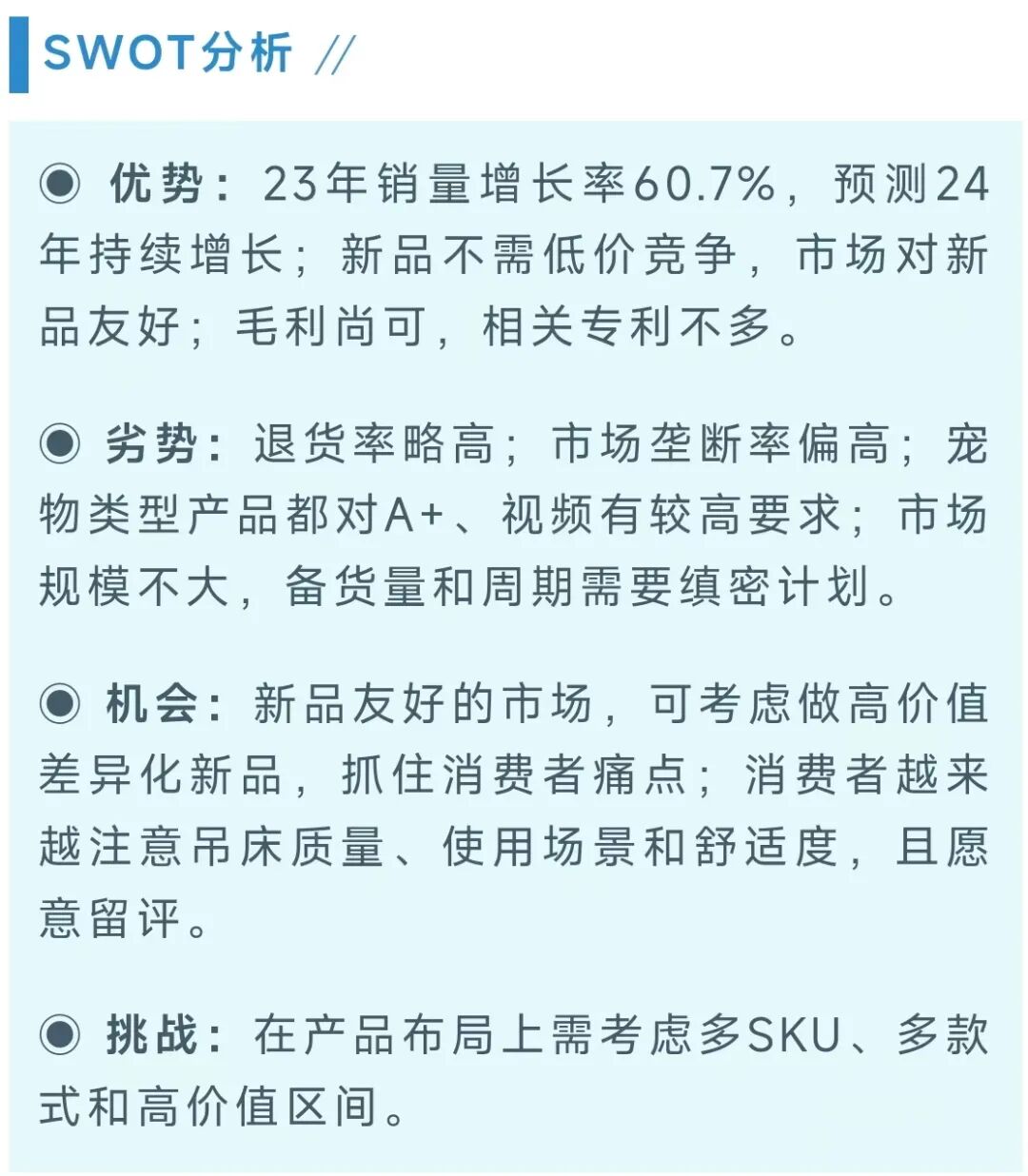 其中,吸盘式吊床由于免安装、家家适用,被更多消费者青睐,2022年销量几乎翻倍,毛利尚可,相关专利不多,卖家可结合自身实际决定是否适合进入。