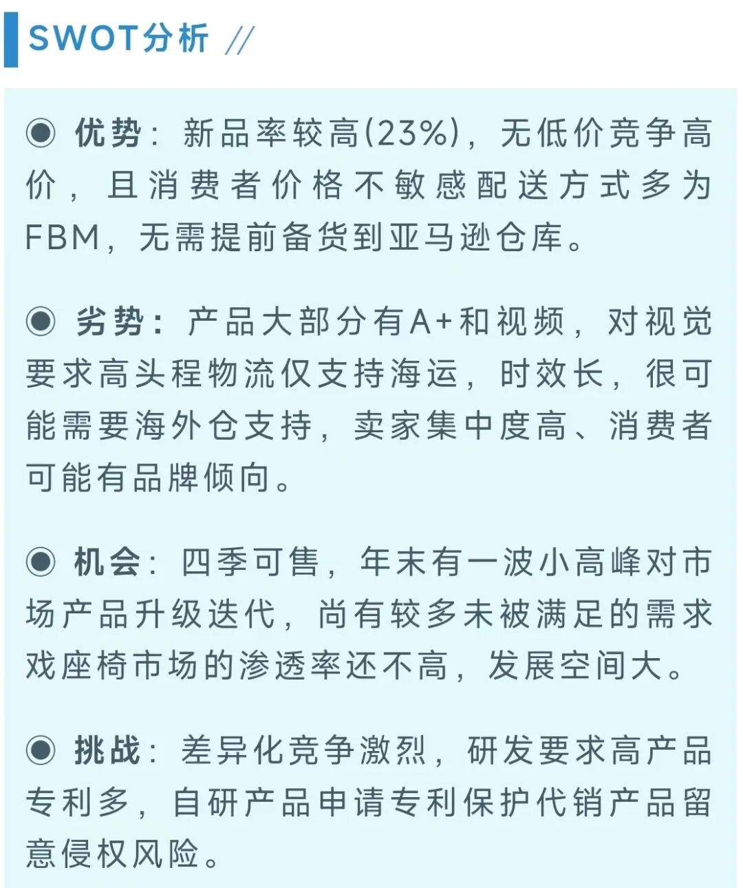 另外,电竞椅的客单价高、PPC竞价高、亚马逊自营多,卖家集中度高、消费者可能有品牌倾向,是需要面对的困境,卖家需结合自身实际决定是否适合进入。
