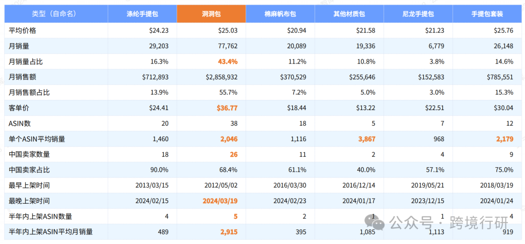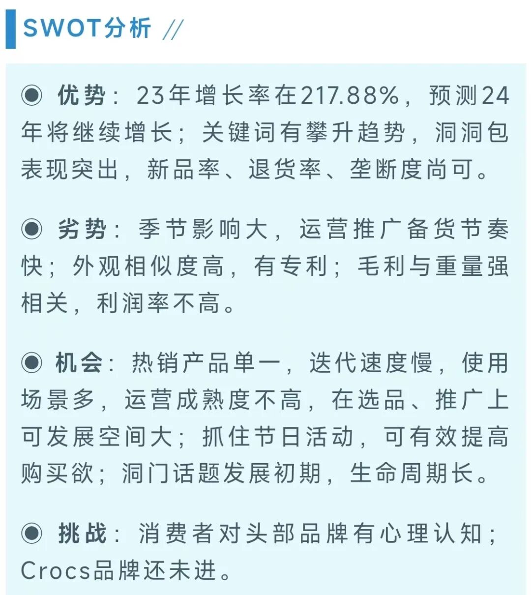 其中,起源于“洞洞鞋”的“洞洞包”,以独特的造型和个性化的DIY属性,受到众多消费者欢迎,但该款式季节影响严重、毛利不高、有专利需改造等风险,卖家需结合自身实际决定是否适合进入。