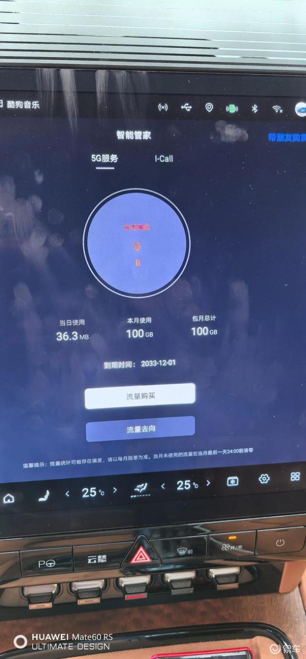 忽然发现仰望赠送的车机每月100G流量居然不够用的,还好到月底最后一天了。有车友感兴趣我流量去哪里了,去向主要是音乐app高清音源和全车几个屏幕的视频app,比如一首高清音源歌曲300M左右,一天路上听十几首歌曲就几个G,一个月100G很轻松就没了