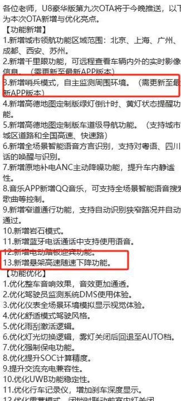 豪华版第九次OTA将于今晚如期正式推送,以下为本次OTA新增与优化亮点。