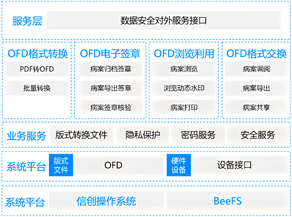 OFD医院文档管理系统是数字认证公司自主研发,满足新标准4级、5级、6级对于OFD应用要求的电子病案OFD应用系统,系统支持电子病案OFD格式转换、OFD签章、OFD存储以及OFD浏览、打印、导出的多场景利用。助力医院实现OFD国产技术应用,逐步降低医院对国外系统、组件的依赖,减少成本支出,通过自主技术解决病案的保存、流转和调阅使用等问题,实现数据的统一管理和利用。