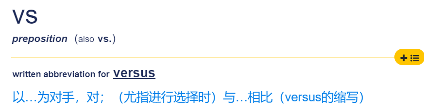 VS是英文单词 versus[ˈvɜːsəs] 的简写