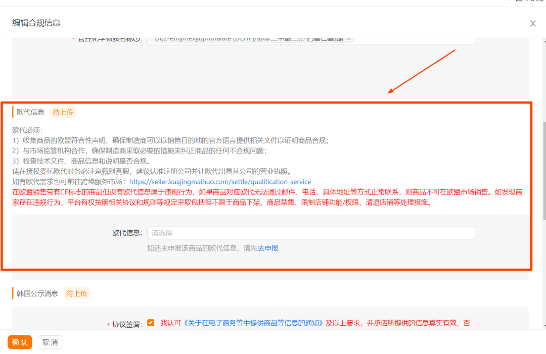 卖家中心—合规中心—负责人信息申报,进入欧代信息上传页面,商家需在后台上传真实、有效、合规的欧代信息。