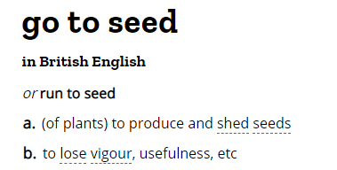 2.如果某人 go to seed, 是说这个人失去活力,变得越来越无用。