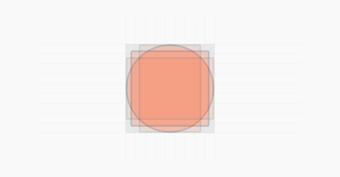 1.同一大小的图标,因为形状不同,视觉效果会不同,如下图,同样都是100px·100px的圆形和正方形,但从视觉上却上完全不同的,这时需要,抛去参考线束缚,使图标视觉上大小统一,根据图标删格系统绘制。