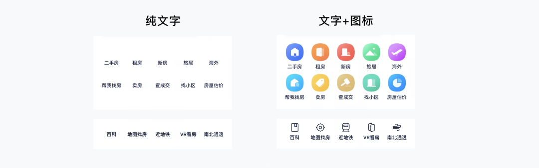1.纯文字与图标使用对比,图标从视觉上更简洁易识别,阅读性更强