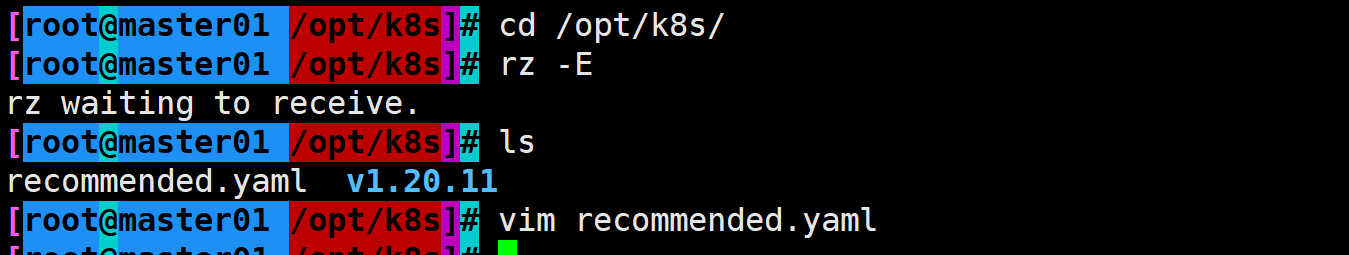 6.1上传 recommended.yaml 文件到 /opt/k8s 目录