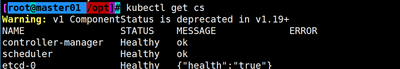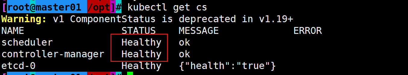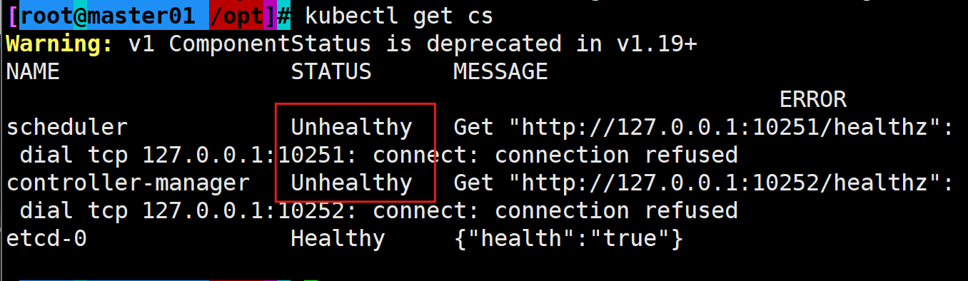 4.6使用 kubectl get cs命令,检查集群状况,假设状态不对修改yaml文件