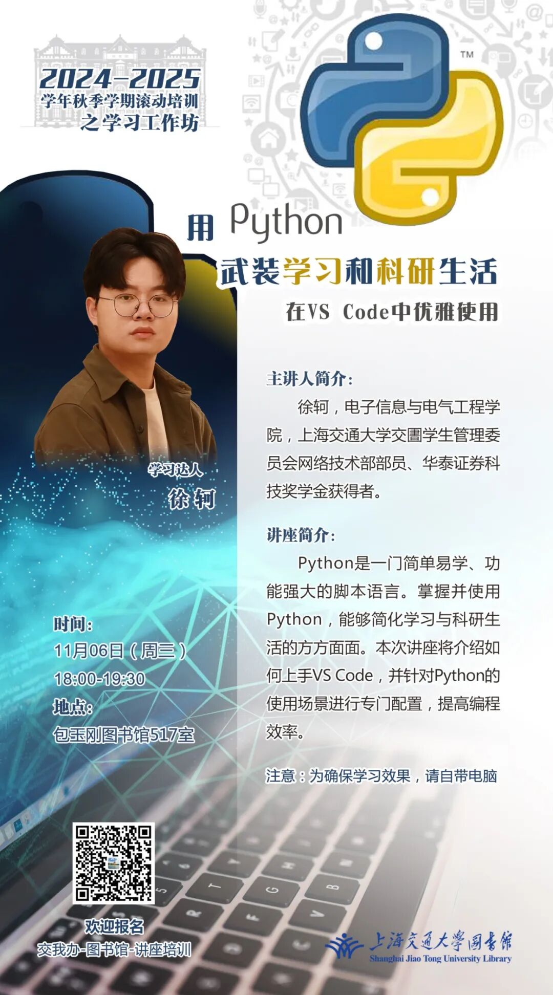 2024-2025学年秋季学期图书馆学习工作坊火热进行中,欢迎同学们扫描海报二维码报名参与学习!