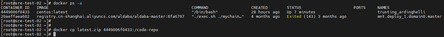 输入exit就可以返回到centos宿主机的命令行提示符了,一旦退出容器,/bin/bash命令也就结束了,容器也随之停止了运行。