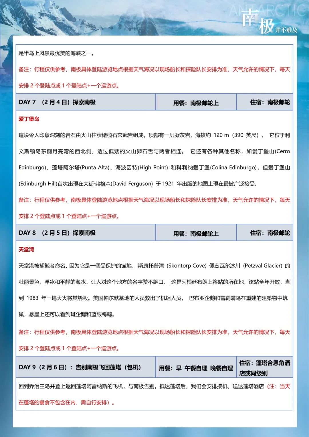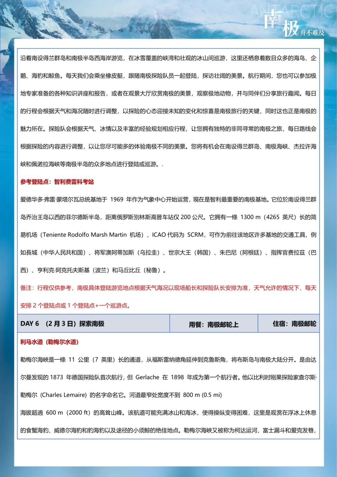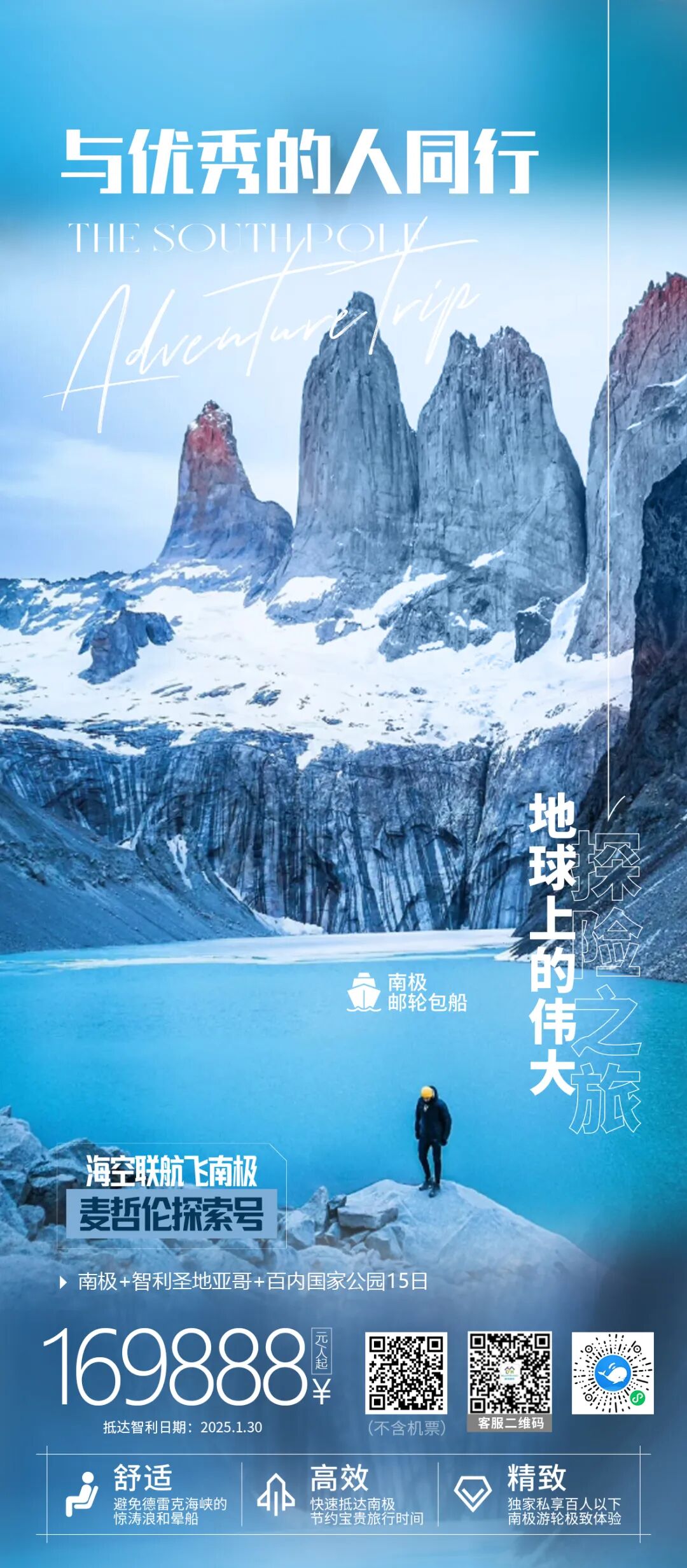 在2025年的春节出发,正是1月底2月初的好时节,此时正值南极盛夏,可以看到企鹅群体活跃、身心灵感受冰川壮丽,南极大陆一片生命力四溢。