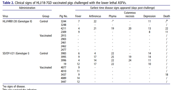 四、HLJ/18-7GD疫苗会使猪对I基因型低毒ASFV产生较差的交叉保护