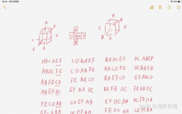 讯享网#include <bits/stdc++.h> using namespace std; using LL = long long; #define A 1 #define B 2 #define C 3 #define D 4 #define E 5 #define F 6 const int maxn = 1010; int n; int dice[maxn][7]; int pre[maxn]; int find(int x) { return x == pre[x] ? x : pre[x] = find(pre[x]); } void unite(int x, int y) { x = find(x); y = find(y); pre[x] = y; } int check(int x, int y) { if (dice[x][1]==dice[y][A]&&dice[x][2]==dice[y][B]&&dice[x][3]==dice[y][C]&&dice[x][4]==dice[y][D]&&dice[x][5]==dice[y][E]&&dice[x][6]==dice[y][F]) return 1; if (dice[x][1]==dice[y][C]&&dice[x][2]==dice[y][D]&&dice[x][3]==dice[y][B]&&dice[x][4]==dice[y][A]&&dice[x][5]==dice[y][E]&&dice[x][6]==dice[y][F]) return 1; if (dice[x][1]==dice[y][B]&&dice[x][2]==dice[y][A]&&dice[x][3]==dice[y][D]&&dice[x][4]==dice[y][C]&&dice[x][5]==dice[y][E]&&dice[x][6]==dice[y][F]) return 1; if (dice[x][1]==dice[y][D]&&dice[x][2]==dice[y][C]&&dice[x][3]==dice[y][A]&&dice[x][4]==dice[y][B]&&dice[x][5]==dice[y][E]&&dice[x][6]==dice[y][F]) return 1; if (dice[x][1]==dice[y][A]&&dice[x][2]==dice[y][B]&&dice[x][3]==dice[y][D]&&dice[x][4]==dice[y][C]&&dice[x][5]==dice[y][F]&&dice[x][6]==dice[y][E]) return 1; if (dice[x][1]==dice[y][C]&&dice[x][2]==dice[y][D]&&dice[x][3]==dice[y][A]&&dice[x][4]==dice[y][B]&&dice[x][5]==dice[y][F]&&dice[x][6]==dice[y][E]) return 1; if (dice[x][1]==dice[y][B]&&dice[x][2]==dice[y][A]&&dice[x][3]==dice[y][C]&&dice[x][4]==dice[y][D]&&dice[x][5]==dice[y][F]&&dice[x][6]==dice[y][E]) return 1; if (dice[x][1]==dice[y][D]&&dice[x][2]==dice[y][C]&&dice[x][3]==dice[y][B]&&dice[x][4]==dice[y][A]&&dice[x][5]==dice[y][F]&&dice[x][6]==dice[y][E]) return 1; if (dice[x][1]==dice[y][A]&&dice[x][2]==dice[y][B]&&dice[x][3]==dice[y][F]&&dice[x][4]==dice[y][E]&&dice[x][5]==dice[y][C]&&dice[x][6]==dice[y][D]) return 1; if (dice[x][1]==dice[y][F]&&dice[x][2]==dice[y][E]&&dice[x][3]==dice[y][B]&&dice[x][4]==dice[y][A]&&dice[x][5]==dice[y][C]&&dice[x][6]==dice[y][D]) return 1; if (dice[x][1]==dice[y][B]&&dice[x][2]==dice[y][A]&&dice[x][3]==dice[y][E]&&dice[x][4]==dice[y][F]&&dice[x][5]==dice[y][C]&&dice[x][6]==dice[y][D]) return 1; if (dice[x][1]==dice[y][E]&&dice[x][2]==dice[y][F]&&dice[x][3]==dice[y][A]&&dice[x][4]==dice[y][B]&&dice[x][5]==dice[y][C]&&dice[x][6]==dice[y][D]) return 1; if (dice[x][1]==dice[y][A]&&dice[x][2]==dice[y][B]&&dice[x][3]==dice[y][E]&&dice[x][4]==dice[y][F]&&dice[x][5]==dice[y][D]&&dice[x][6]==dice[y][C]) return 1; if (dice[x][1]==dice[y][E]&&dice[x][2]==dice[y][F]&&dice[x][3]==dice[y][B]&&dice[x][4]==dice[y][A]&&dice[x][5]==dice[y][D]&&dice[x][6]==dice[y][C]) return 1; if (dice[x][1]==dice[y][B]&&dice[x][2]==dice[y][A]&&dice[x][3]==dice[y][F]&&dice[x][4]==dice[y][E]&&dice[x][5]==dice[y][D]&&dice[x][6]==dice[y][C]) return 1; if (dice[x][1]==dice[y][F]&&dice[x][2]==dice[y][E]&&dice[x][3]==dice[y][A]&&dice[x][4]==dice[y][B]&&dice[x][5]==dice[y][D]&&dice[x][6]==dice[y][C]) return 1; if (dice[x][1]==dice[y][F]&&dice[x][2]==dice[y][E]&&dice[x][3]==dice[y][C]&&dice[x][4]==dice[y][D]&&dice[x][5]==dice[y][A]&&dice[x][6]==dice[y][B]) return 1; if (dice[x][1]==dice[y][C]&&dice[x][2]==dice[y][D]&&dice[x][3]==dice[y][E]&&dice[x][4]==dice[y][F]&&dice[x][5]==dice[y][A]&&dice[x][6]==dice[y][B]) return 1; if (dice[x][1]==dice[y][E]&&dice[x][2]==dice[y][F]&&dice[x][3]==dice[y][D]&&dice[x][4]==dice[y][C]&&dice[x][5]==dice[y][A]&&dice[x][6]==dice[y][B]) return 1; if (dice[x][1]==dice[y][D]&&dice[x][2]==dice[y][C]&&dice[x][3]==dice[y][F]&&dice[x][4]==dice[y][E]&&dice[x][5]==dice[y][A]&&dice[x][6]==dice[y][B]) return 1; if (dice[x][1]==dice[y][E]&&dice[x][2]==dice[y][F]&&dice[x][3]==dice[y][C]&&dice[x][4]==dice[y][D]&&dice[x][5]==dice[y][B]&&dice[x][6]==dice[y][A]) return 1; if (dice[x][1]==dice[y][D]&&dice[x][2]==dice[y][C]&&dice[x][3]==dice[y][E]&&dice[x][4]==dice[y][F]&&dice[x][5]==dice[y][B]&&dice[x][6]==dice[y][A]) return 1; if (dice[x][1]==dice[y][F]&&dice[x][2]==dice[y][E]&&dice[x][3]==dice[y][D]&&dice[x][4]==dice[y][C]&&dice[x][5]==dice[y][B]&&dice[x][6]==dice[y][A]) return 1; if (dice[x][1]==dice[y][C]&&dice[x][2]==dice[y][D]&&dice[x][3]==dice[y][F]&&dice[x][4]==dice[y][E]&&dice[x][5]==dice[y][B]&&dice[x][6]==dice[y][A]) return 1; return 0; } signed main() { // freopen(“in”, ”r”, stdin); // freopen(“out”, ”w”, stdout); while (~scanf(“%d”, &n)) { for (int i = 1; i <= n; i++) { pre[i] = i; } for (int i = 1; i <= n; i++) { for (int j = 1; j <= 6; j++) { scanf(“%d”, &dice[i][j]); } } for (int i = 1; i <= n; i++) { for (int j = i + 1; j <= n; j++) { if (check(i, j)) unite(i, j); } } int ret1 = 0; for (int i = 1; i <= n; i++) { if (i == find(i)) ret1++; } printf(“%d “, ret1); map<int, int> vis; for (int i = 1; i <= n; i++) { vis[find(i)]++; } vector<int> ret2; for (const auto &x : vis) { ret2.emplace_back(x.second); } sort(ret2.begin(), ret2.end(), greater<int>()); for (int i = 0; i < ret2.size(); i++) { printf(”%d%c”, ret2[i], ” “[i == ret2.size() - 1]); } } return 0; } 贴一下枚举的图吧。。