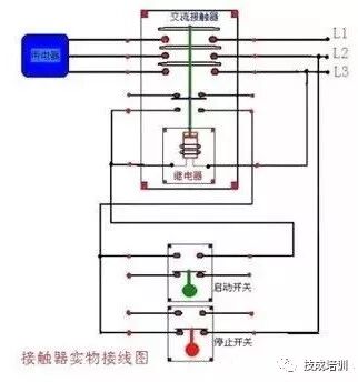 首先三相电源,分别接接触器的主触点L1、L2、L3,再从接触器的T1、T2、T3接出三根线接电机的三个接线柱,以上是主电路。