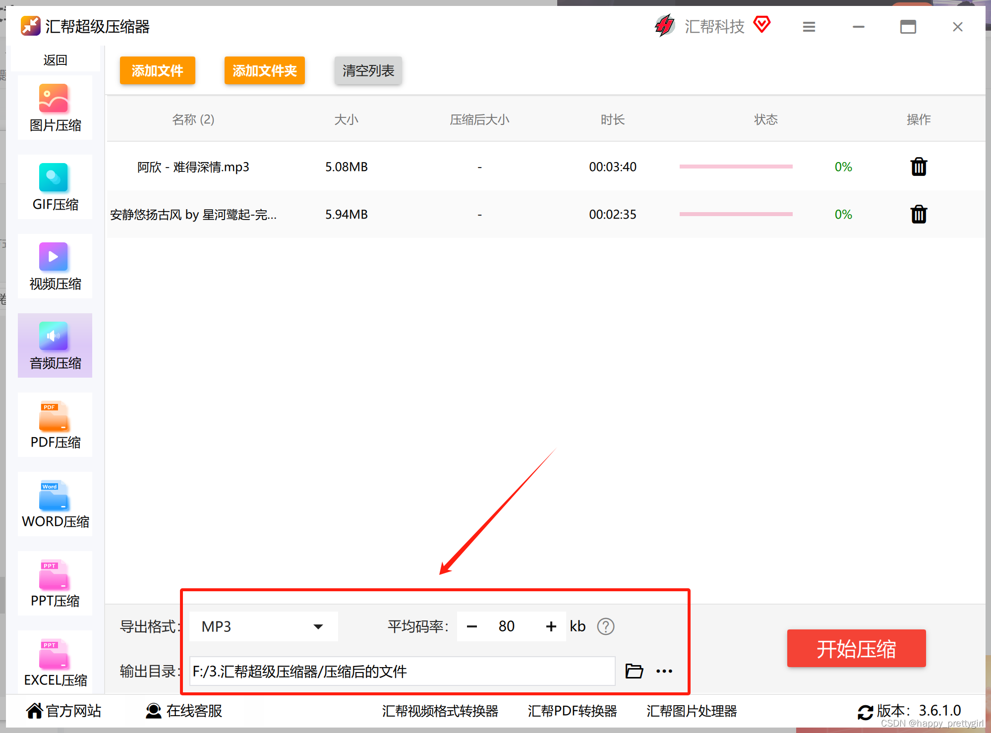 下面介绍一下怎么压缩音频文件: