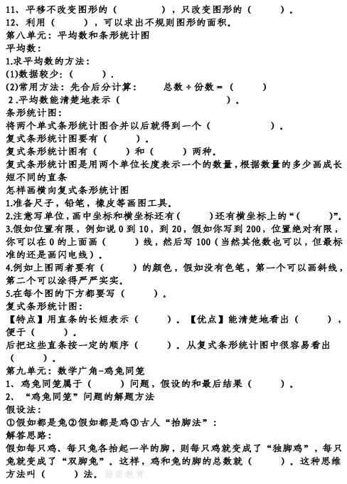 7、常见的圆柱圆锥解决问题:①、压路机压过路面面积(求侧面积);②、压路机压过路面的路程(求几个底面周长);③、水桶铁皮(求侧面积和一个底面积);④、厨师帽(求侧面积和一个底面积);通风管(求侧面积)。